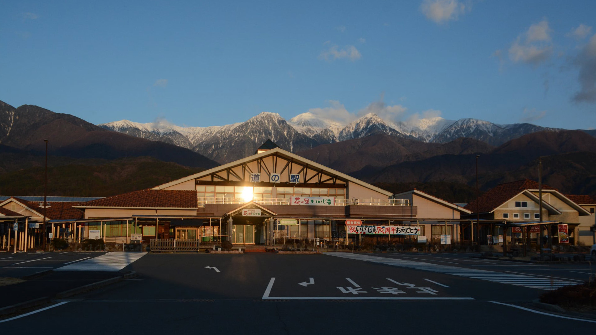 花の里いいじまは雄大な中央アルプスの麓に位置し、はるか伊那谷を見渡せば向こうに南アルプスの峰々が一望できる素晴らしいロケーションです。