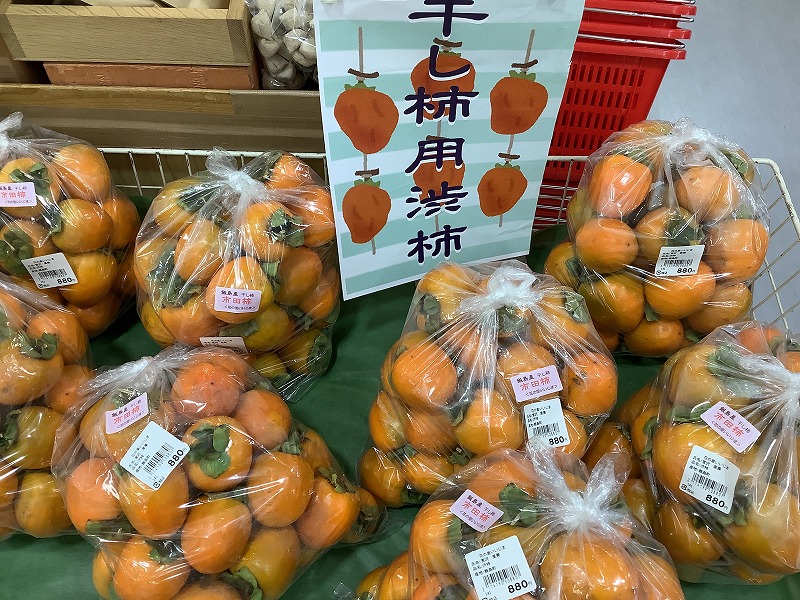 渋柿、りんご陽光でました 南信州伊那谷、水車が回る道の駅、花の里いいじま。「ふたつのアルプスが見える町飯島町」にあります。