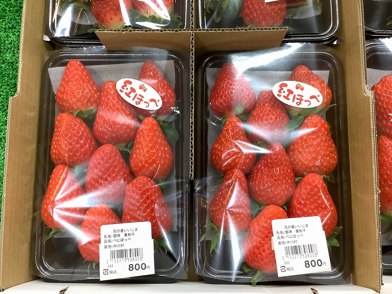 いちご初入荷 2026/01/06 直売所入荷情報 イチゴが初入荷しました。 大人気 ”章姫” に”紅ほっぺ”も仲間入り 採れ始めで入荷量はやや少なめです。 章姫 紅ほっぺ アルストロメリア シンビジューム 市田柿 なでしこ 南アルプス 鉢花 シンビジューム なでしこ チューリップ キンセンカ アルストロメリア ストック 中央アルプス 中央アルプス