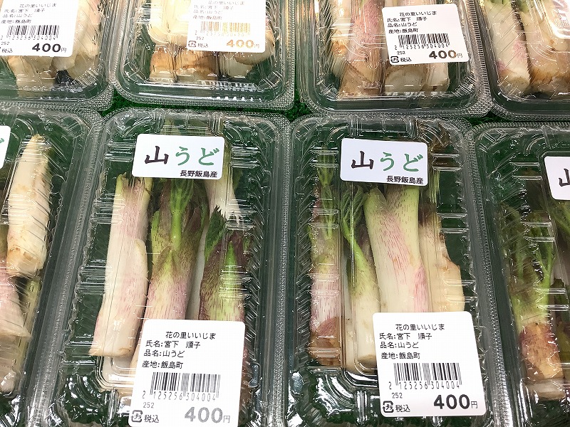 山ウド、アスパラ入荷です。 南信州伊那谷、水車が回る道の駅、花の里いいじま。「ふたつのアルプスが見える町飯島町」にあります。