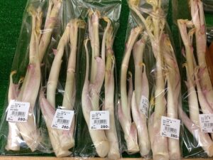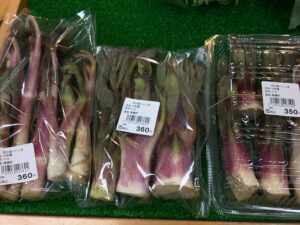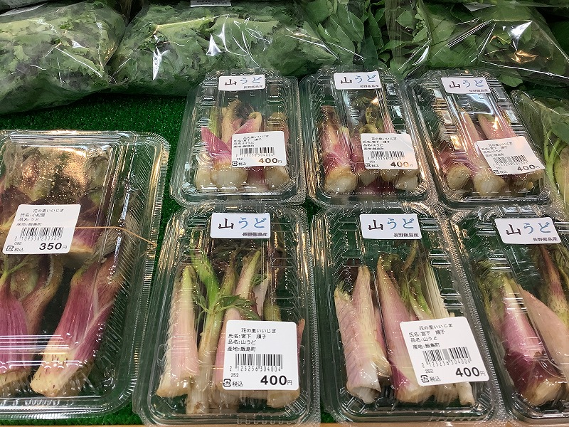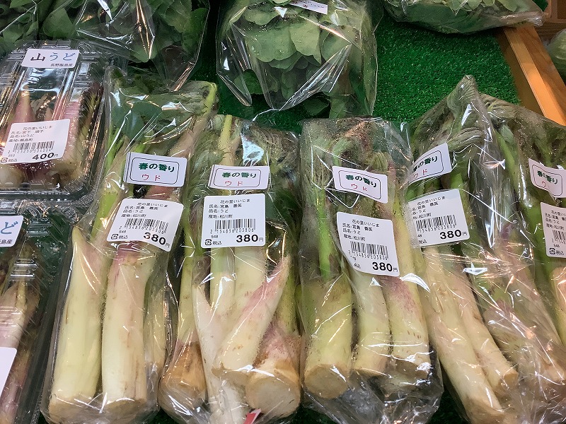 山ウド、行者ニンニク他 春野菜、山菜が並び始めました。